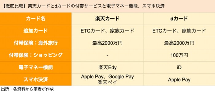 【徹底比較】楽天カードとdカードの付帯サービスと電子マネー機能、スマホ決済
