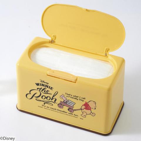 収納できるマスクは普通サイズのものなら約60枚。ばね式リフトアップ構造になっているため、マスクが減ってきても簡単に取り出すことができます。フタ部分もワンプッシュオープン式となっているのでこちらも簡単に作業ができますね。価格は税込979円。くまのプーさんはイエロー、スヌーピーはホワイト、ハローキティとすみっコぐらしはピンクのボディです。
