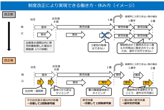 女性の負担が大きい出産直後に、男性が柔軟に育休を取れる環境が整えられたといえるでしょう。