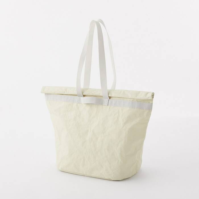 ホワイトカラーで、荷物を入れた後上部を折り曲げてあげれば、中身も見えません。コインらドリーなどに行く機会も増えるこの時期、かなり活躍してくれそうなアイテムですね。