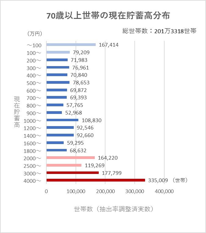 さきほどのグラフは、70歳以上の貯蓄現在高階級における世帯数をまとめたものです。