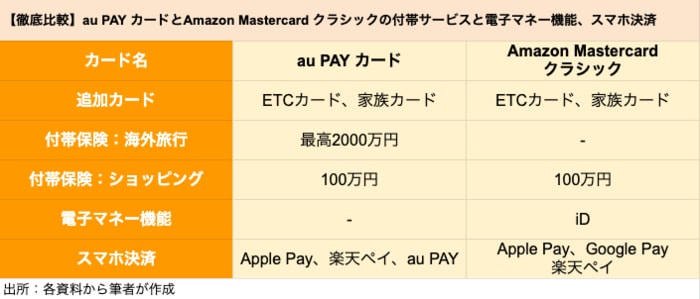 【徹底比較】au PAY カードとAmazon Mastercard クラシックの付帯サービスと電子マネー機能、スマホ決済