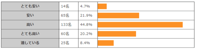 「高い」が44.8%、「とても高い」が20.2%となり、合わせて6割以上の人が不満に感じていることがわかります。
