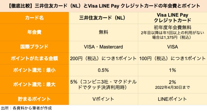 【徹底比較】三井住友カード(NL)とVisa LINE Pay クレジットカードの年会費とポイント