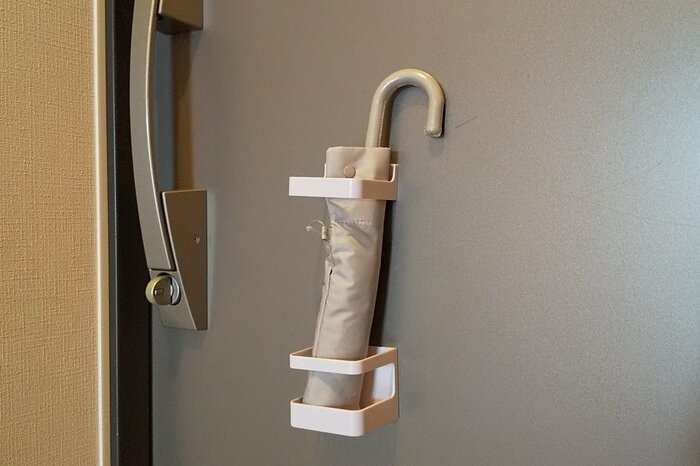 連日のように傘を持ち歩く梅雨シーズン。この時期のお悩みといえば、持ち帰った傘の置き場ではないでしょうか。家の外に掛けておくのは見た目が気になる、だけど家の中に掛けておくには邪魔。そんな悩みに対応しているのが、ダイソーから発売されている「マグネットタイプ傘立て」です。