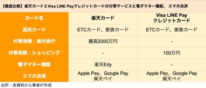 【徹底比較】楽天カードとVisa LINE Payクレジットカードの付帯サービスと電子マネー機能、 スマホ決済