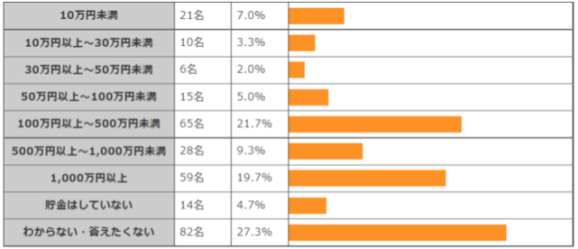 貯金額「100~500万円未満」「1000万円以上」ともに約2割