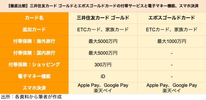 【徹底比較】三井住友カード ゴールドとエポスゴールドカードの付帯サービスと電子マネー機能、スマホ決済