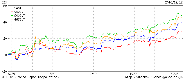 さて、少し話は変わりますが、最近のトランプラリーで大いに気を吐いているのがテレビ局の株価です。銀行株などが急伸してあまり目立っていませんでしたが、実は良いパフォーマンスを上げています。