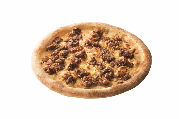 ナポリ風生地に、炭火焼カルビ・オニオン・ガーリック・ゴマ・ブラックペッパーをトッピングし、香ばしく焼き上げた食事にぴったりの食べ応えのあるピザです。