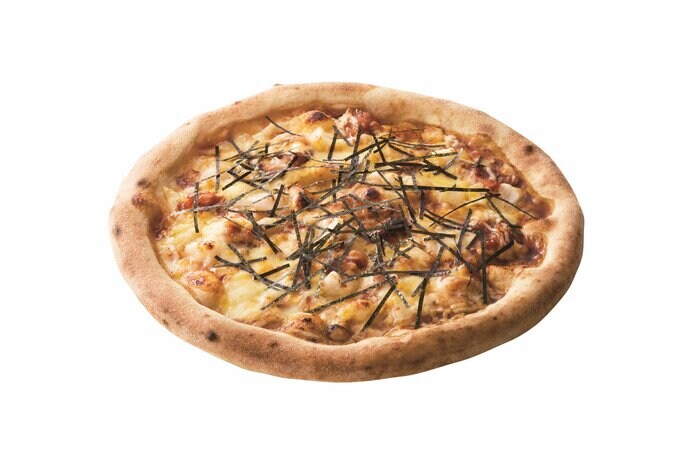 ナポリ風生地に、てりやきチキン・もち・オニオン・ミックスチーズ・てりやきソース・マヨネーズ・のりをトッピングし、香ばしく焼き上げたピザです。おもちがアクセントとなった和風の味が楽しめます。