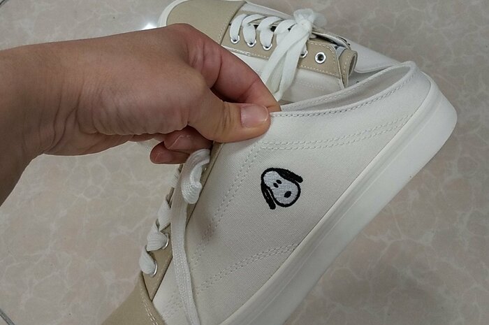 今回、しまむらから登場した「スヌーピーミュールスニーカー」は、側面にスヌーピーの刺繍があしらわれたかわいらしいシューズです。正面からはスニーカーのようにみえながらも、ミュールのように簡単に着脱ができる便利なタイプ。滑りにくい素材を靴底に使用した防滑になっているのもうれしいですね。
