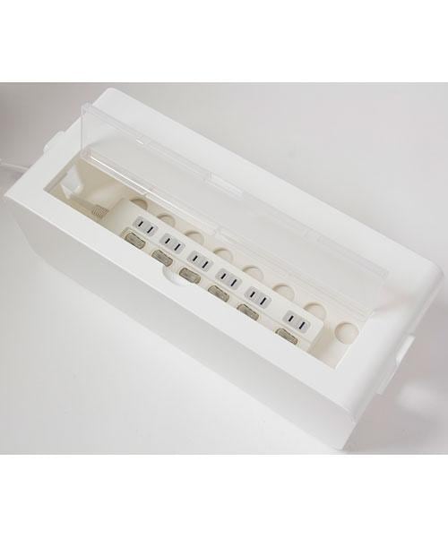 ニトリネットでも人気上位に位置する、コード収納専用ボックス。長さ25cmまでの電源タップに対応しており、充電コードやアダプタなどをスッキリ目隠しすることができます。上部には透明フラップがついており、スイッチ付き電源タップのオンオフが可能。上部はフラットで小物が置けるため、スマホの充電ステーションとしても使える優れものです。