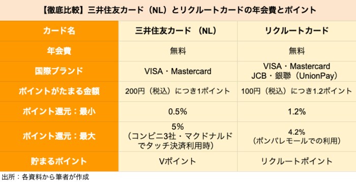 【徹底比較】三井住友カード(NL)とリクルートカードの年会費とポイント