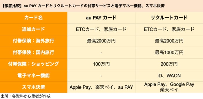 【徹底比較】au PAY カードとリクルートカードの付帯サービスと電子マネー機能、スマホ決済