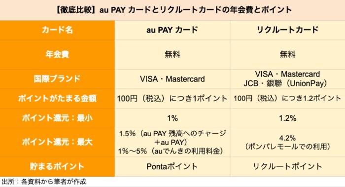 【徹底比較】au PAY カードとリクルートカードの年会費とポイント