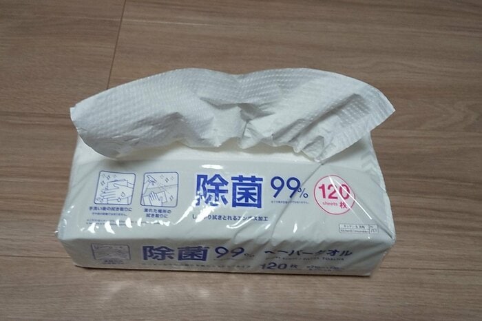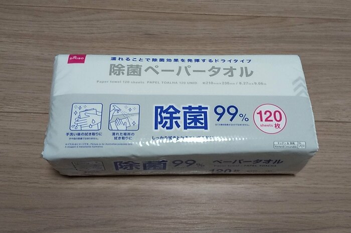 今回ダイソーから発売された「除菌ペーパータオル」は、水に濡れるまでは乾いたペーパータオルで濡れることにより除菌効果を発揮するので、保管中の乾燥などを気にせず使うことができます。
