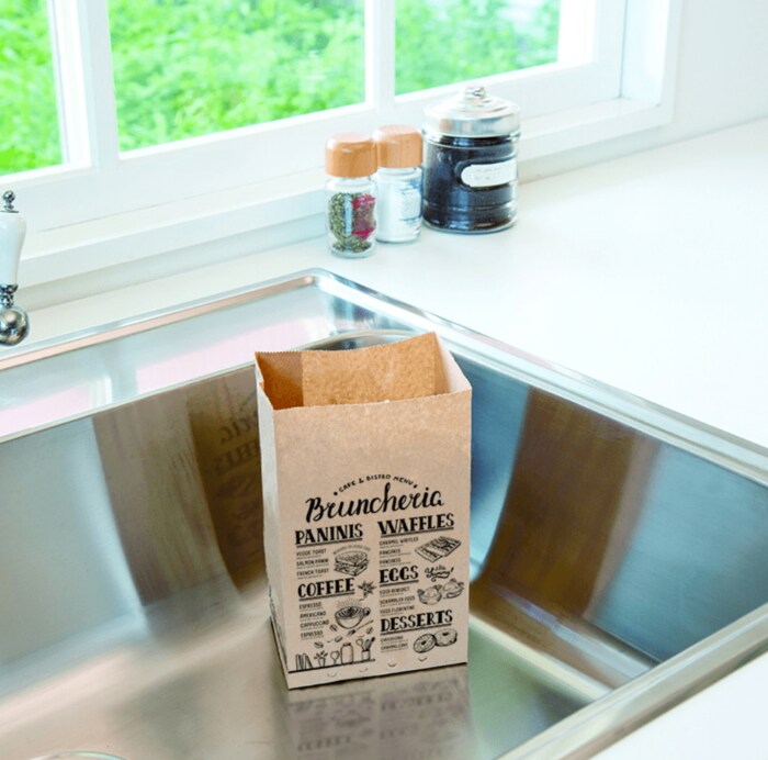 シンクに置いて、野菜の皮や卵の殻を捨てられる耐水紙製の水切りゴミ袋。しっかり自立するので、三角コーナーの容器が不要に。底面がメッシュになっており、すばやく水切りできます。おしゃれなデザインのものが多いのも嬉しいポイントです。