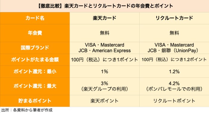 【徹底比較】楽天カードとリクルートカードの年会費とポイント