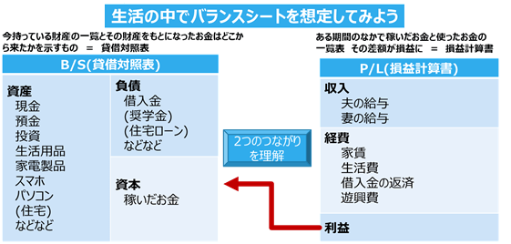 それではバランスシート(貸借対照表)と損益計算書の関係を見てみましょう。