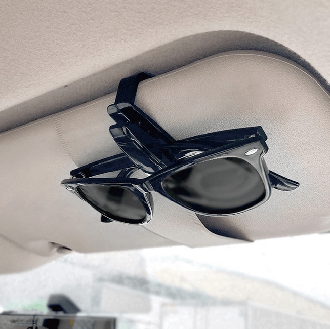 車のサンバイザーに装着して、サングラスを収納することができる専用クリップ。メガネ以外にカードなどもクリップ可能です。「サッと取れる位置にあって助かる」「駐車券を挟むのに便利」と、車を普段使いする方々に愛用されているようです。