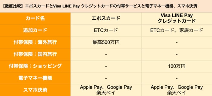 【徹底比較】エポスカードとVisa LINE Pay クレジットカードの付帯サービスと電子マネー機能、スマホ決済
