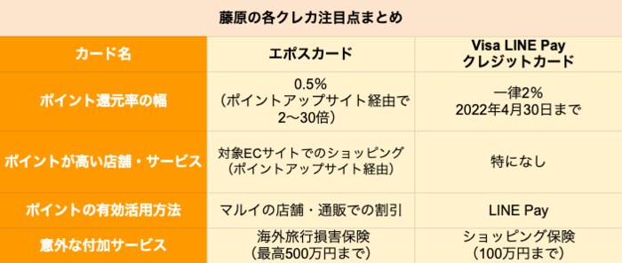 藤原の各クレカ注目点まとめ