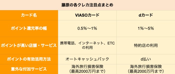 藤原の各クレカ注目点まとめ