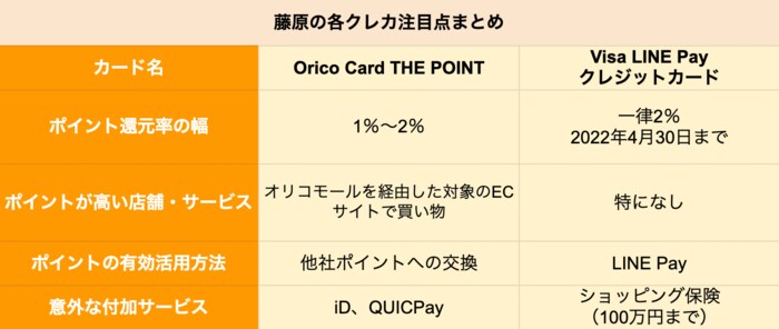 いかがでしたでしょうか。今回はOrico Card THE POINTとVisa LINE Pay クレジットカードを比較しました。少しでも参考になれば幸いです。