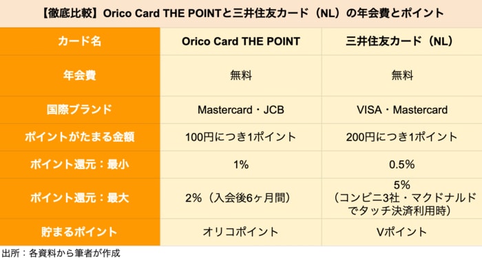 Orico Card THE POINTと三井住友カード(NL)を比較