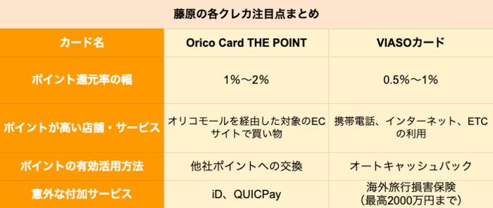 このように、Orico Card THE POINTは還元率や使いやすさが、VIASOカードはポイントのオートキャッシュバックが喜ばれていることがわかります。