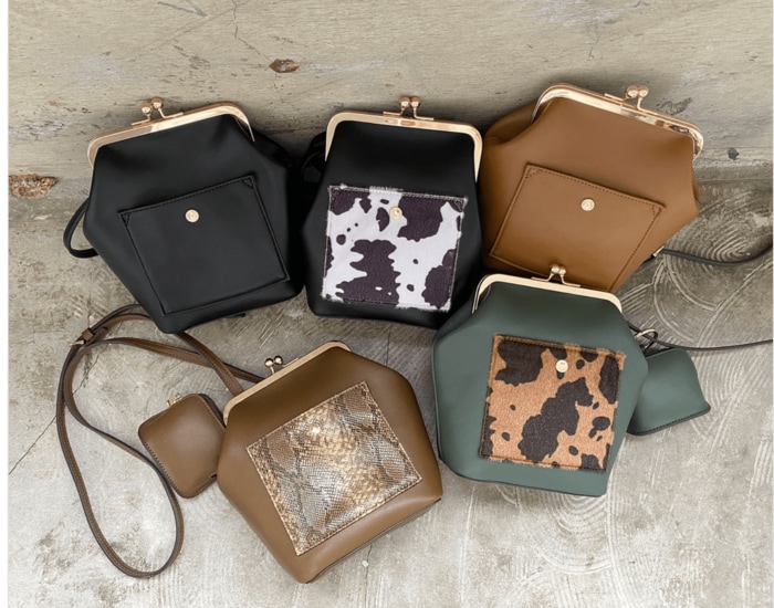 柄は無地合皮とアニマル柄コンビの2タイプとなっており、オールシーズン使えるライトグレー、ブラック、ブラウン(オンラインストア限定)の3色と、アクセントになるトレンドの柄。アニマル柄は、カーキ×カウ柄、ベージュ×パイソン柄、ブラック×カウ柄(オンラインストア限定)の3パターンとなっています。