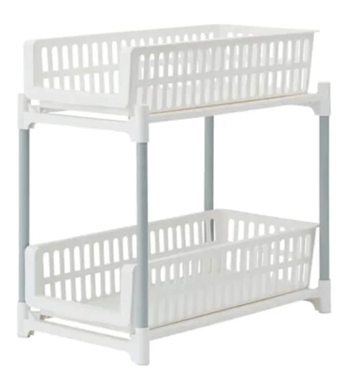 ニトリのオンラインショップでも人気上位にあがる、2段タイプのシンク下収納ラック。設置場所に合わせて幅や棚板の高さを調整可能で、耐荷重は1段あたり5kgです。棚板が外せるため背の高いものを収納したり、排水トラップのあるシンク下に設置したりするのに便利。