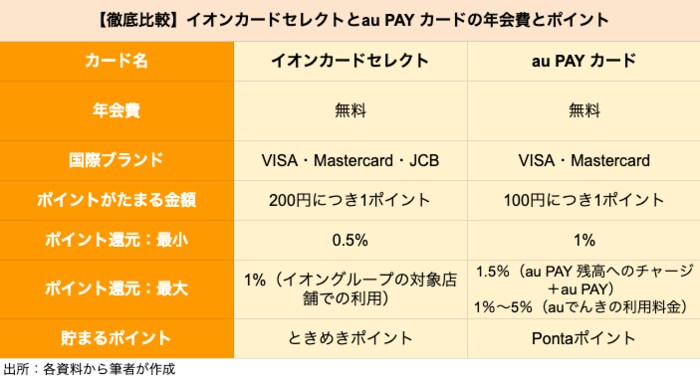 【徹底比較】イオンカードセレクトとau PAY カードの年会費とポイント