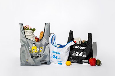 また、スヌーピーのショッピングバッグも同じ日程で登場。S・M・Lの3サイズを展開し、コンパクトに折りたためて、こちらも持ち運びにも便利です。