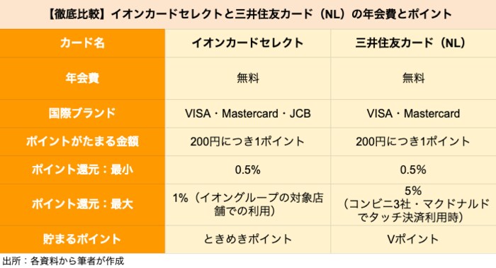 【徹底比較】イオンカードセレクトと三井住友カード(NL)の年会費とポイント