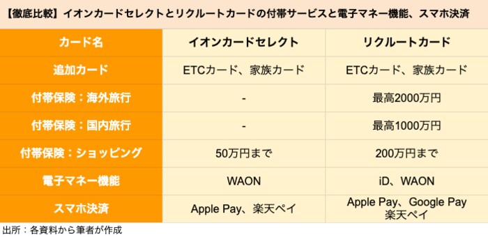 【徹底比較】イオンカードセレクトとリクルートカードの付帯サービスと電子マネー機能、スマホ決済