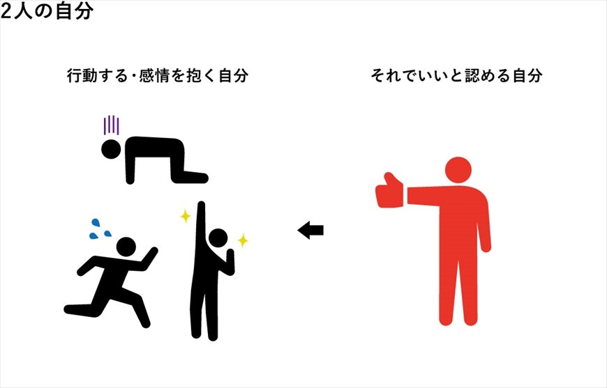 さらに切り離しの感覚が進むと自分を客観視できるようになり、人によっては「行動する・感情を抱く自分と、それでいいと認める自分の2人がいる」とさえ感じられるようになります〈別図版1参照〉。