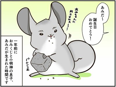 今日はあみだちゃんの1歳の誕生日。ひとつ大人になった彼に大好物のレーズンをプレゼントしてみると…?