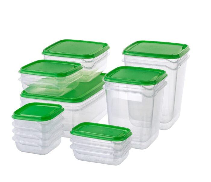 便利な保存容器セットです。さまざまな食材や残り物の保存などに使用できます。使わないときにはふたを外して重ねられるので収納にも便利です。サイズの違った容器が17個入って500円以下はかなり魅力的です。