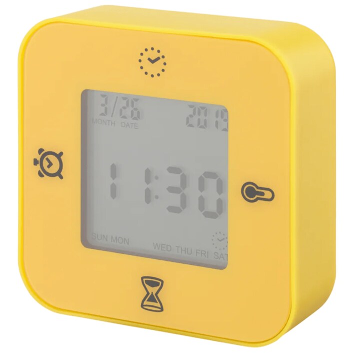 時刻/日付・アラーム・温度・タイマーの4つの機能が、時計の向きを変えるだけで表示される便利なアイテムです。場所を取らず、使い方も簡単。半分寝起きの頭にも分かりやすい表示なので、寝室にもピッタリです。かわいいカラー全5色で、インテリアに合わせて複数買いしてもお得な商品です。