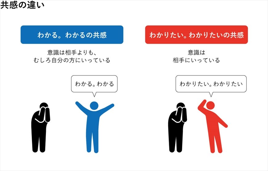 ここで大事なことは、相手の気持ちをきちんと理解しようとする態度を持つこと。「わかる。わかる」ではなく、「わかりたい。わかりたい」という他者理解への態度なのです。