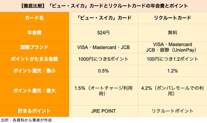 【徹底比較】「ビュー・スイカ」カードとリクルートカードの年会費とポイント