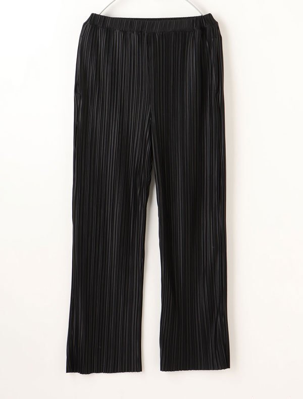 トレンドライクなコーデに仕上げるなら、このプリーツパンツを取り入れるのがおすすめです。縦に細かくのびるプリーツ加工によって、脚のラインをすっきり見せてくれます。伸縮するカットソー素材を使い、自宅でのんびりしたいときにもぴったりな履きごこちなのだとか。すそから10cmまで、自分好みの丈にセルフカットできるのもうれしいですね。