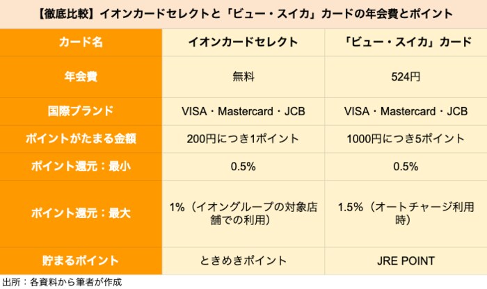 【徹底比較】イオンカードセレクトと「ビュー・スイカ」カードの年会費とポイント