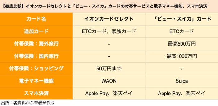 【徹底比較】イオンカードセレクトと「ビュー・スイカ」カードの付帯サービスと電子マネー機能、スマホ決済