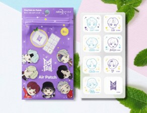 8月19日(木)よりマツモトキヨシで先行販売が始まった新商品「TinyTAN AIR PATCH(タイニータンエアーパッチ)」ですが、大人気のタイニータンキャラクターをプリントした公式グッズとなっています。パッチには4種類の天然エッセンシャルオイルを含み、爽快な香りがマスクの中に広がるこの夏のイチオシの新商品です。