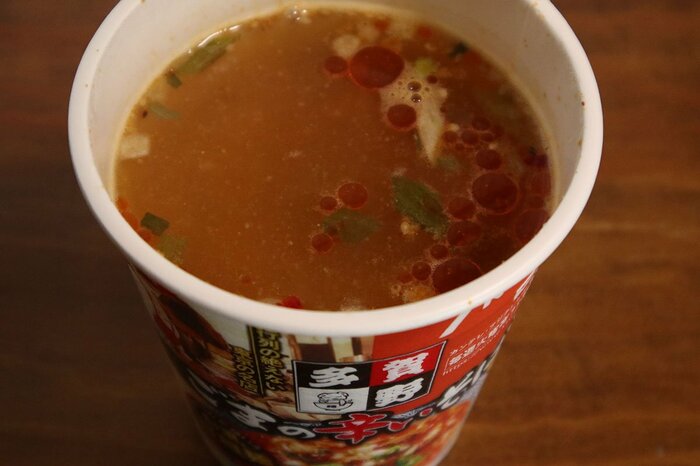 お湯を入れて、待ち時間は5分。フタを開けた瞬間、本当のラーメン店のような香りがふわっと広がります。「本当のラーメン店ってなんやねん」という感じですが、全粒粉っぽい香りといいますかね…。分かります?
