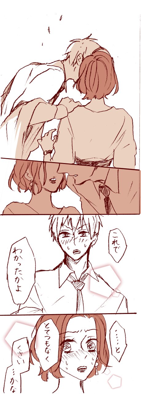 「なあ俺くさい? めっちゃくさくない?」「いやこの距離じゃ分かんないて」「…じゃあ これで わかったかよ」男性の突然の行動に、女性は動揺しつつも「…と とてつもなく くさい…かな」と返事するのが精一杯の様子なのでした。