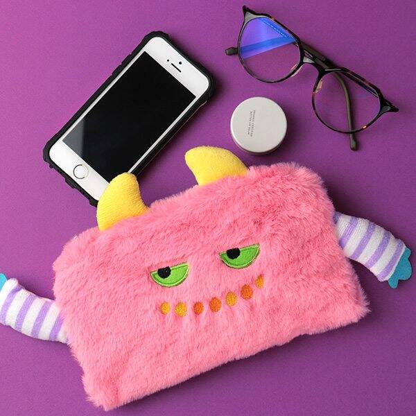 モフモフがかわいい、思わず触っていたくなるモンスターフォルムのポーチです。